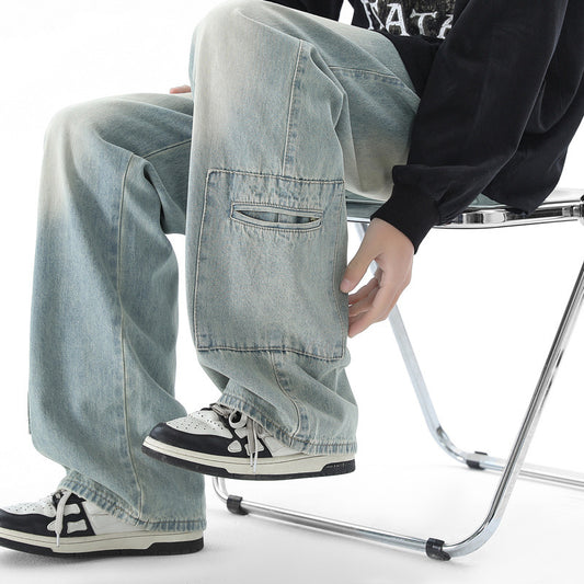 American High Street Multi-pocket Washed Baggy Jeans