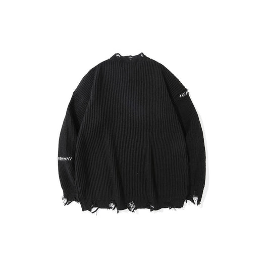 Dark Embroidered Ripped Sweater