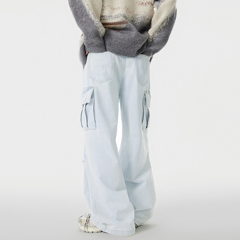 Experience comfort and functionality in our Loose Multi-pocket Work-wear Jeans. These very light blue trousers offer inelasticity and a mid waist for ultimate workwear appearance. Made with denim fabric, available in sizes S-XL. Upgrade your work wardrobe today.