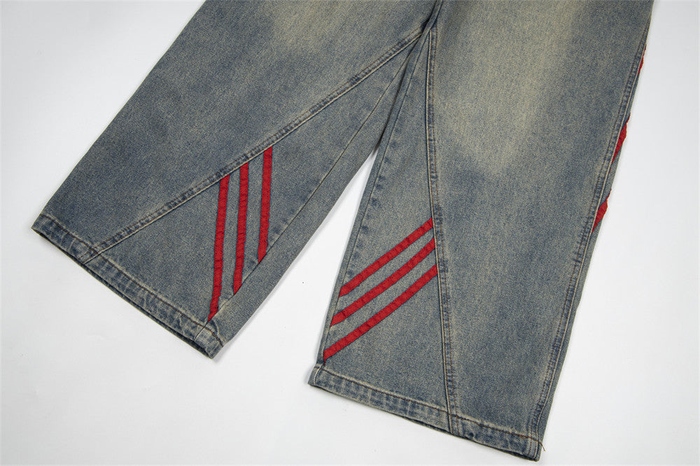 Unleash your casual style with our Striped Straight-leg Denim Jeans. Made from soft, comfortable denim fabric, these jeans come in a playful blue color with sizes M, L, and XL available. Perfect for any leisure activity, rock this unique design for a quirky and fun look.