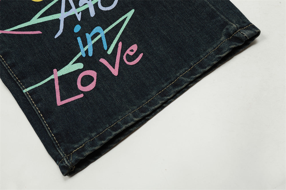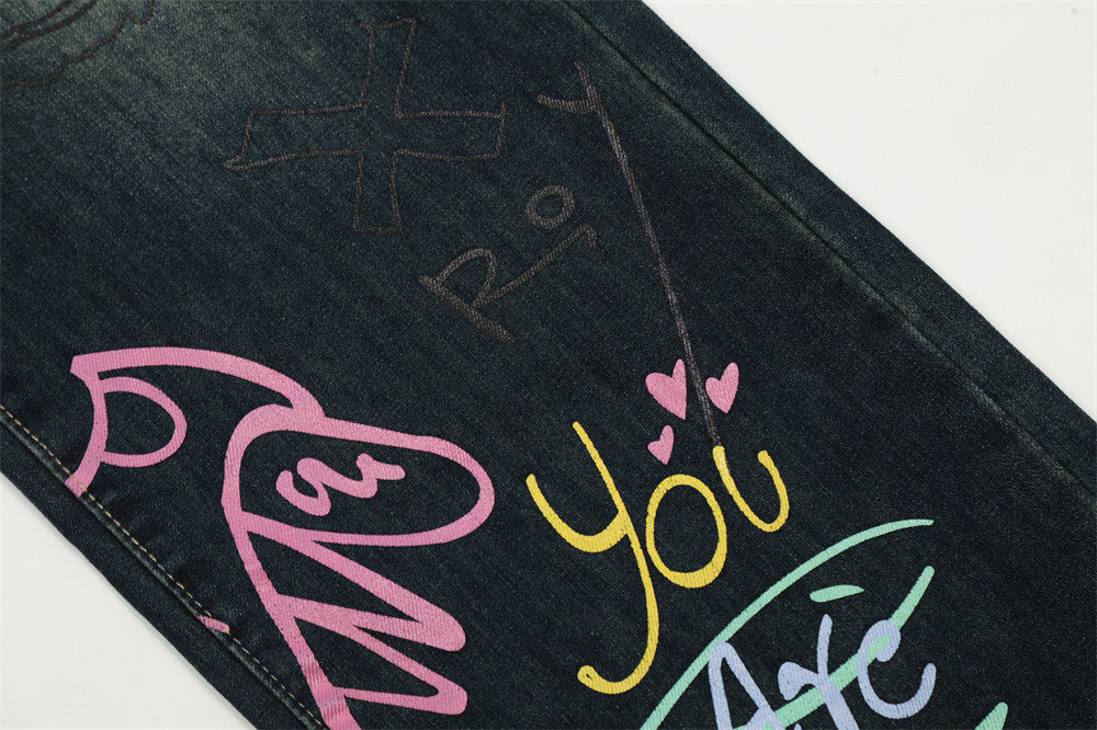 These Retro Graffiti Straight-leg Denim Jeans are perfect for adding some fun retro style to your wardrobe. Made with high-quality denim fabric, these jeans come in a vibrant retro blue color and are available in sizes S-XL. Whether you're dressing up for a night out or keeping it casual, these jeans are perfect for any leisure scenario. Crafted with a blend of cotton, these jeans offer comfort and durability for all-day wear.