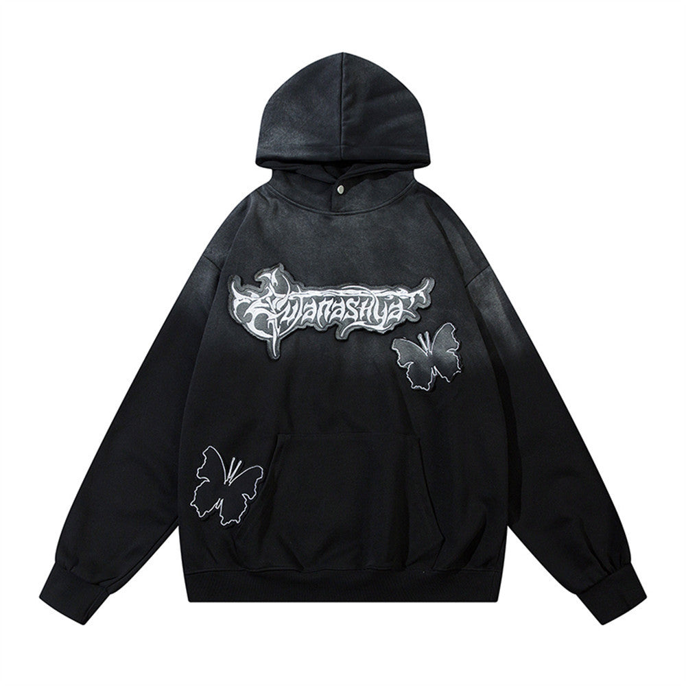 Stay stylish and comfortable with our Inkjet Gradient Hoodie. Featuring a butterfly pattern in black and red, this hoodie is made from a soft and breathable cotton blend. Perfect for leisurely days, it comes in sizes S-XXL and has no padding. Elevate your wardrobe with this unique and versatile piece.