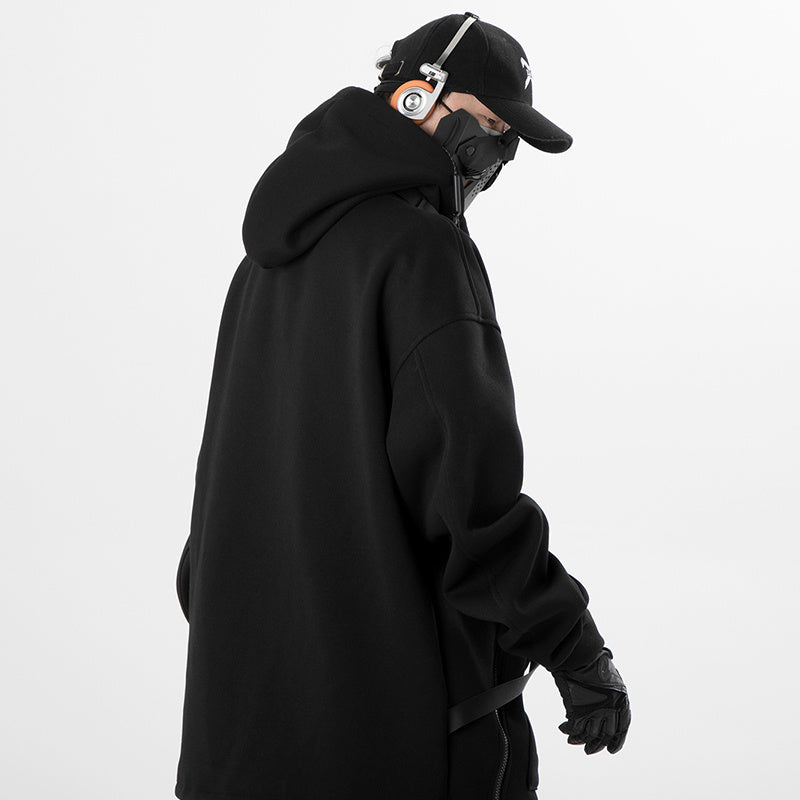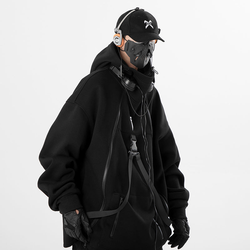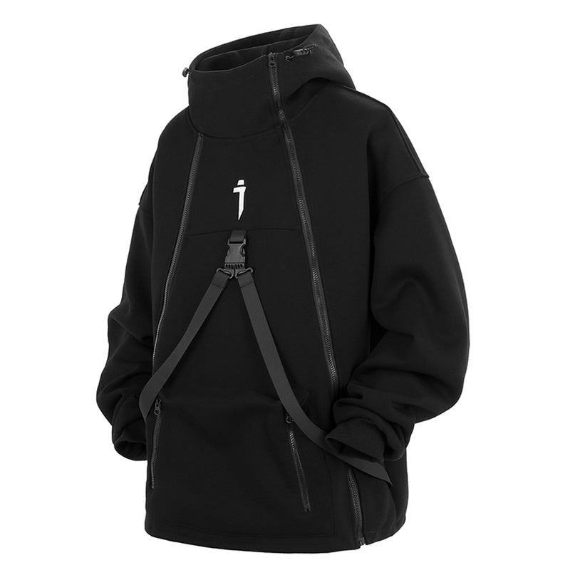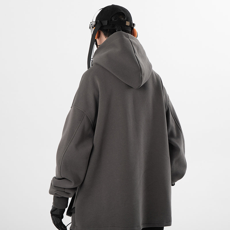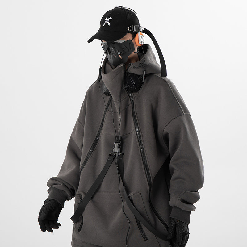 Retro Plus Size Oblique Placket Zipper hoodie