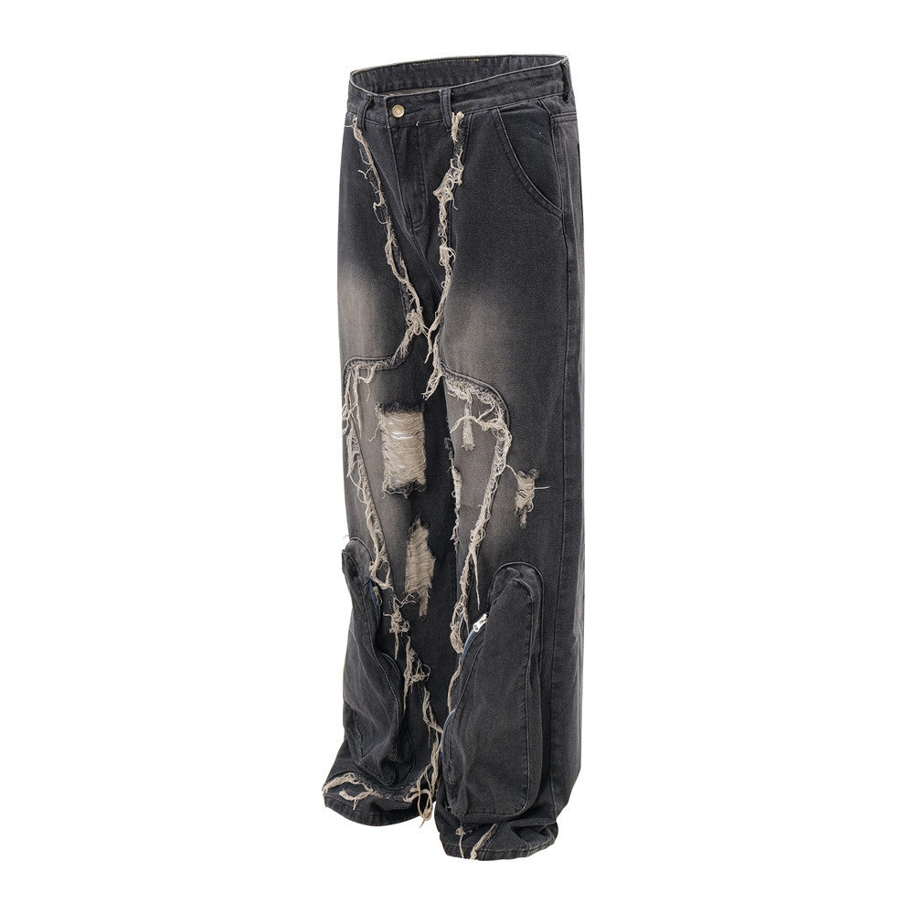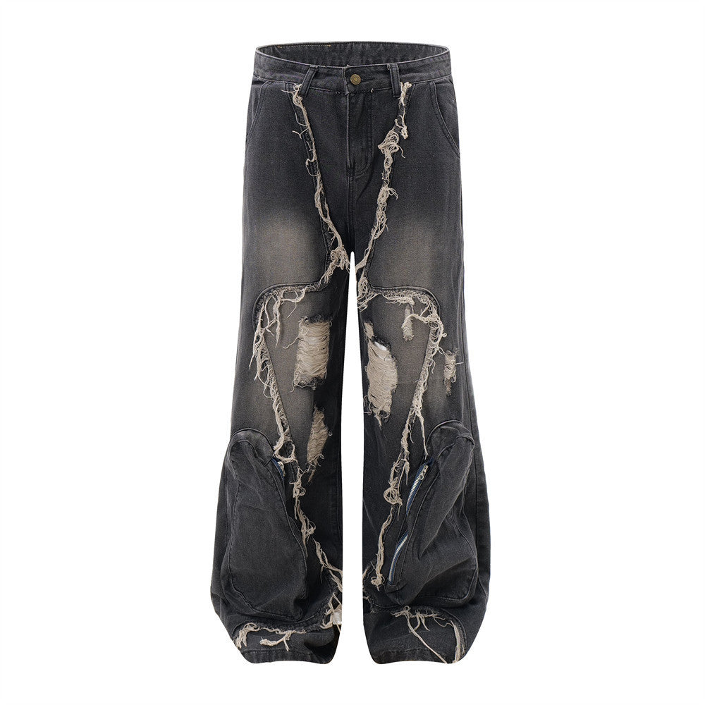 Ripped Wide-legged Denim Jeans
