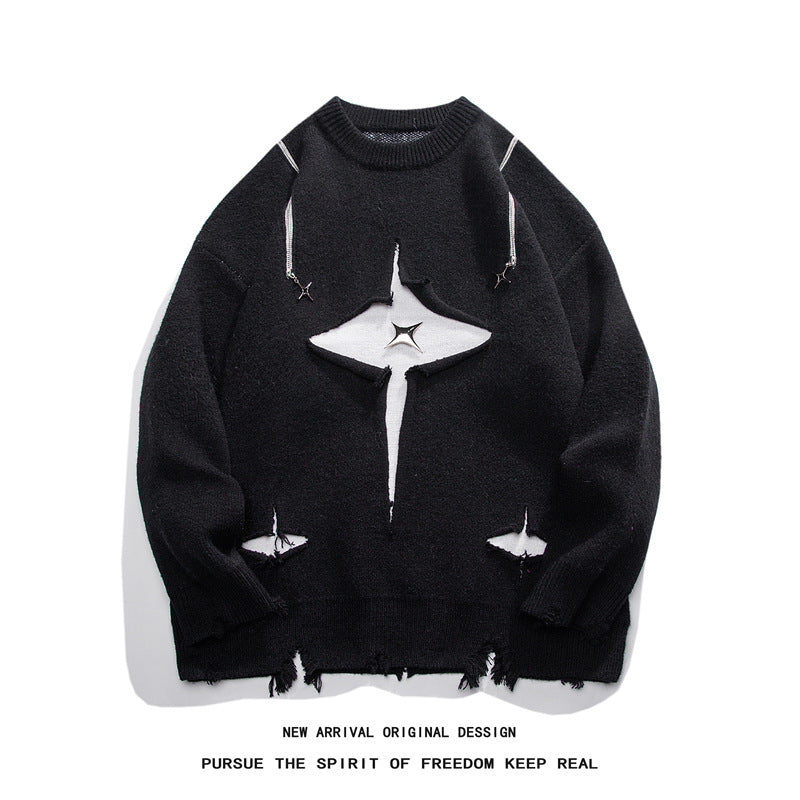 This elegant sweater is designed with a loose fit and round neck, perfect for everyday wear. The contrasting design adds a touch of chic to your wardrobe. Available in a range of sizes for the perfect fit. Stay stylish and warm with this head-turning piece.